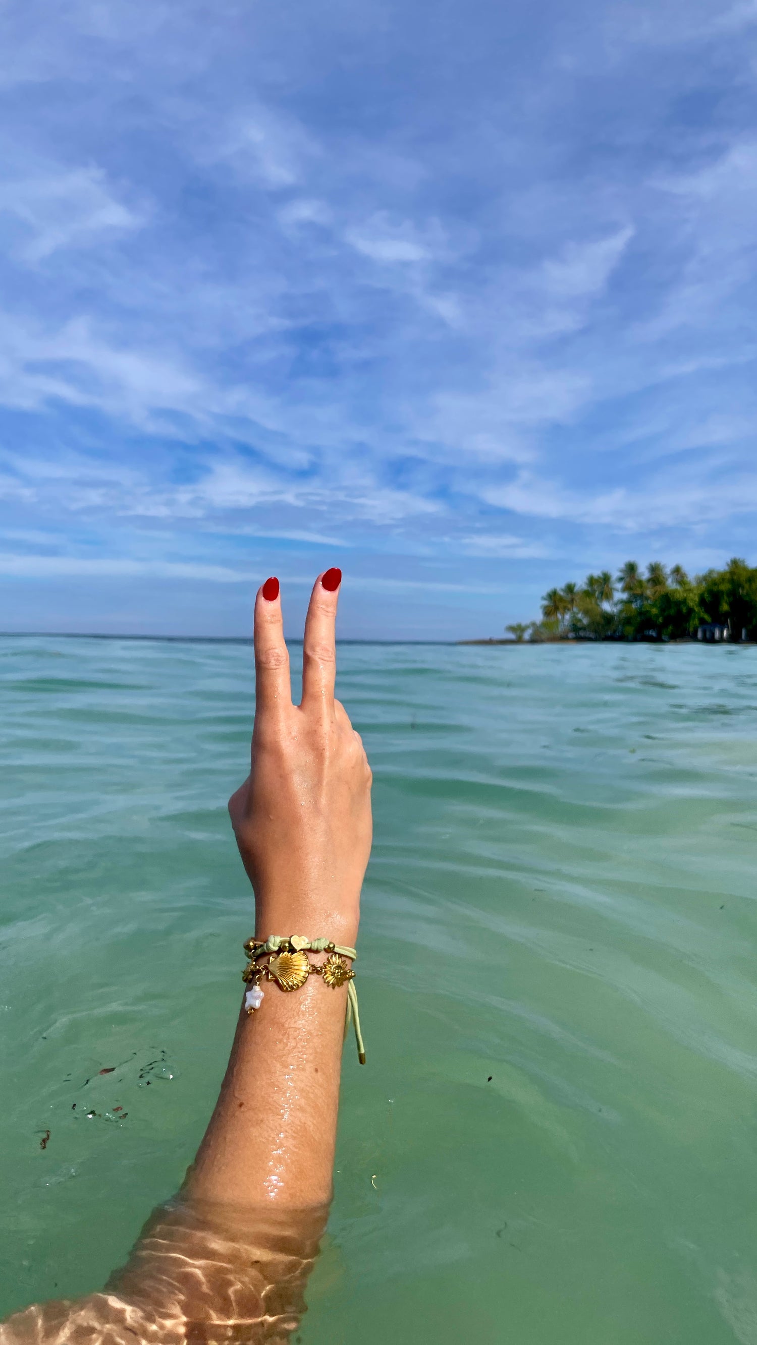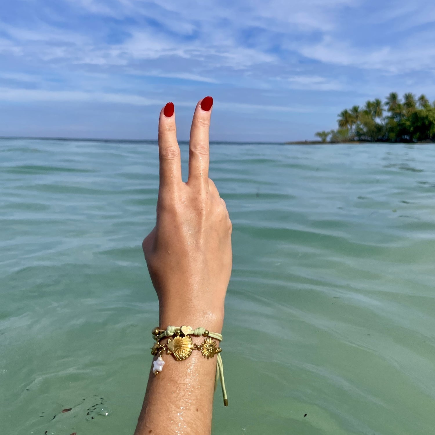 This bracelet is pure storytelling. A sun-drenched homage to the ocean, filled with symbolic charms — fish, shell, stars, and a pearl star. It feels like carrying a piece of a summer memory on your wrist.